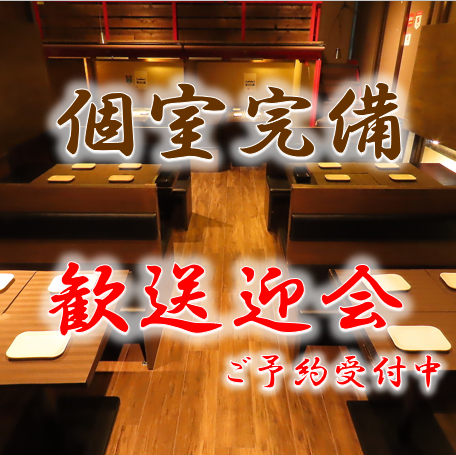 设施齐全的私人包间,配有下沉式暖桌。我们提供充足的私人包间,供您私人使用!当然,我们也承办宴会!下沉式暖桌让您即使在长时间的饮酒聚会中也能放松身心,尽情享用美食。我们可接待小型或大型团体!人数从2人到最多60人不等。我们有适合各种场合的私人包间。